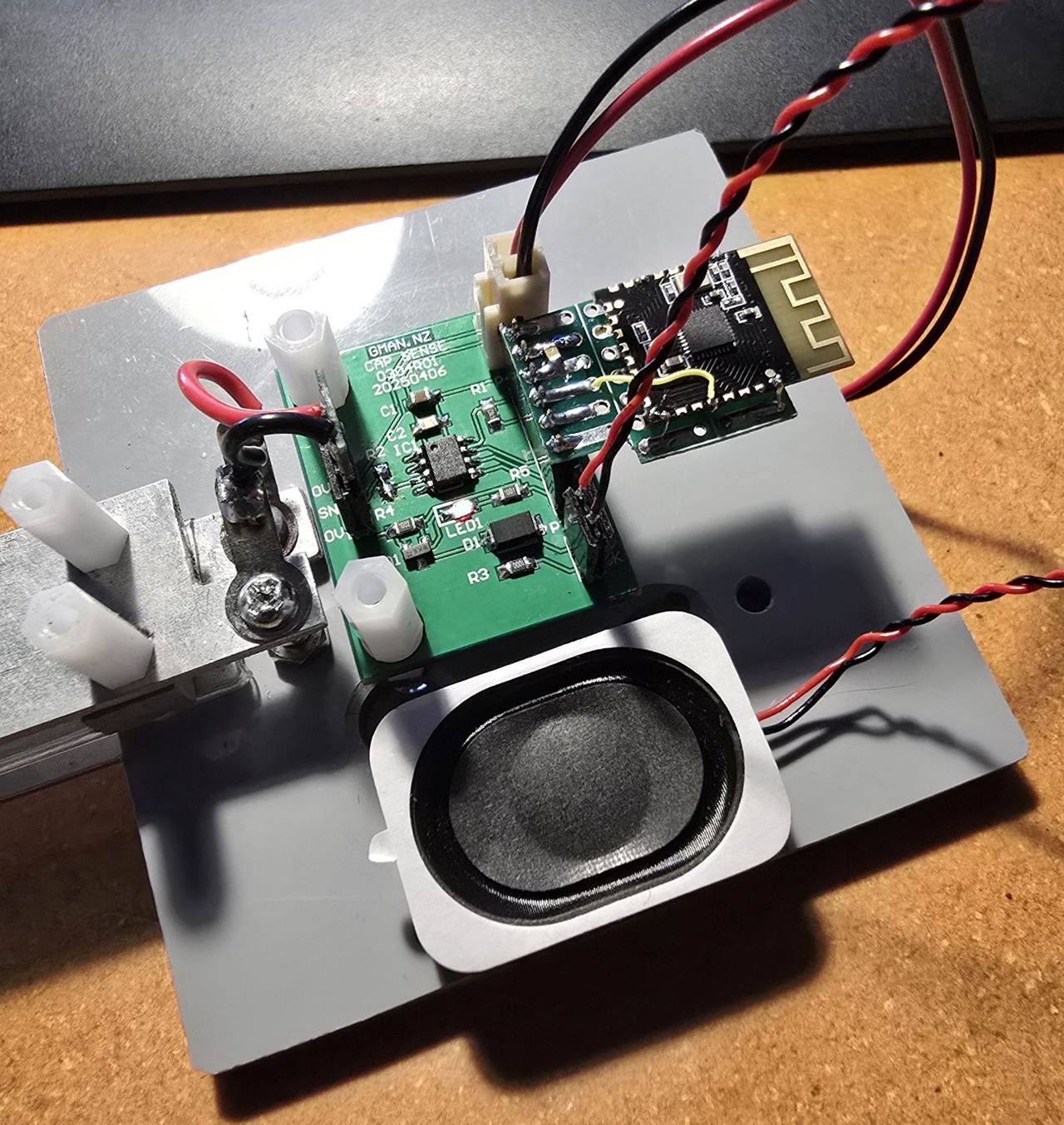 Centre plate is covered with clear heat shrink sleeving to insulate it from