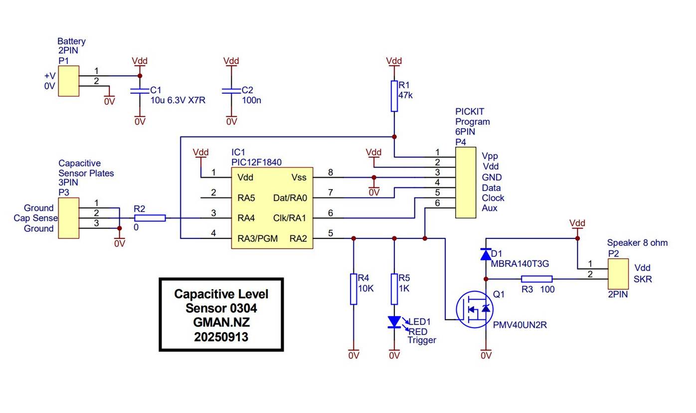 Key words: Capsense CPS Touch Sensing Capacitive Level Sensing PIC12F1840 Microchip GCBasic Compiler GCStudio PICKit 2 Serial Debug
