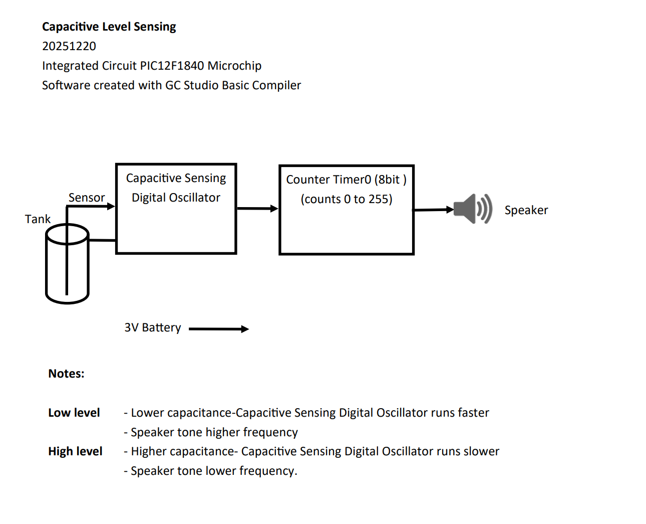 ' Capsens PIC12F1840 18 Speaker tone directly from Timer0 overflow