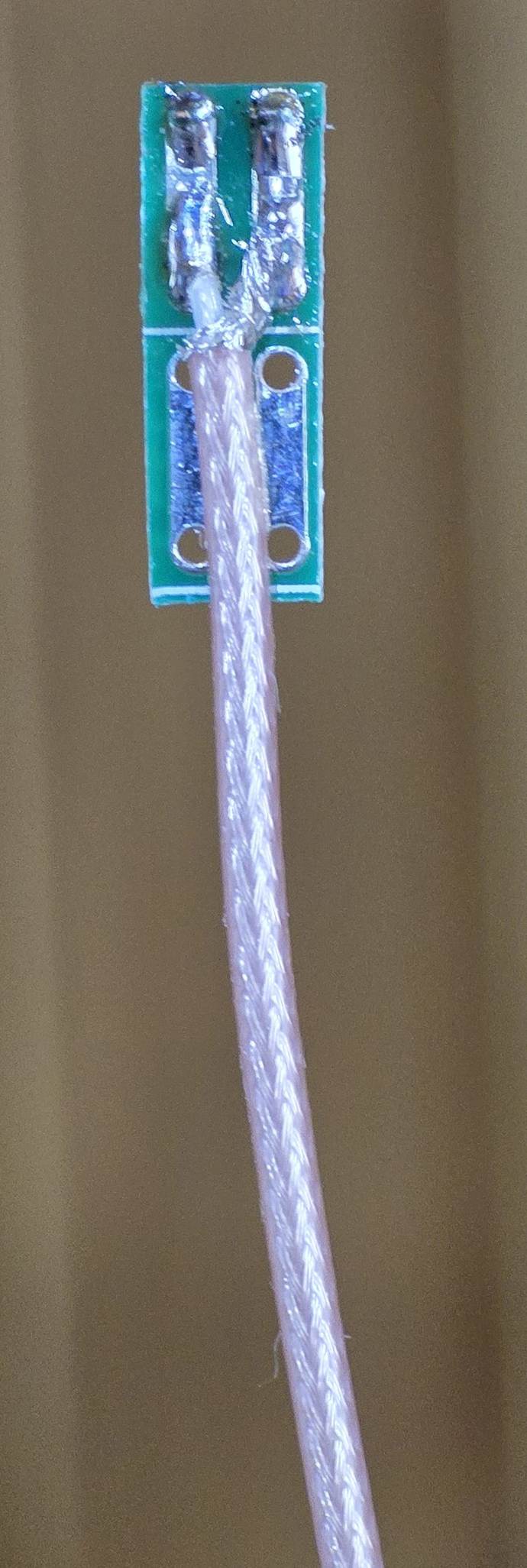 After initial tests with water, several test cables were made using RG178 coax to provide capacitors.